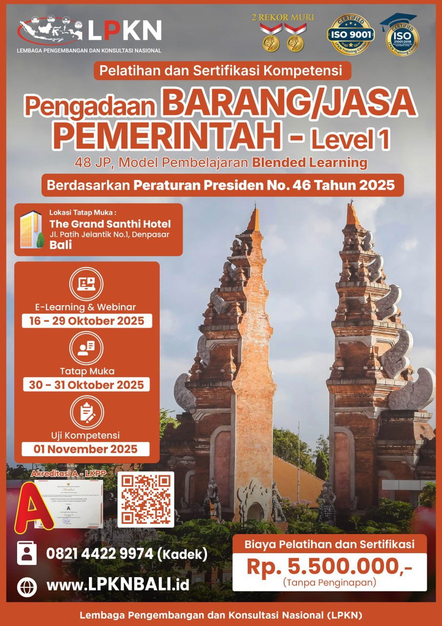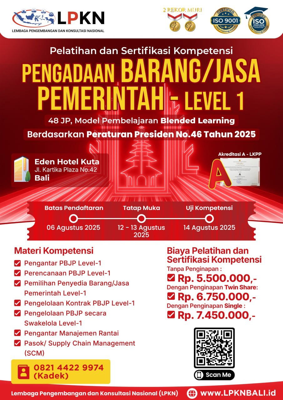 Pelatihan dan Sertifikasi Kompetensi Pengadaan Barang/Jasa Pemerintah (PBJP) Level 1